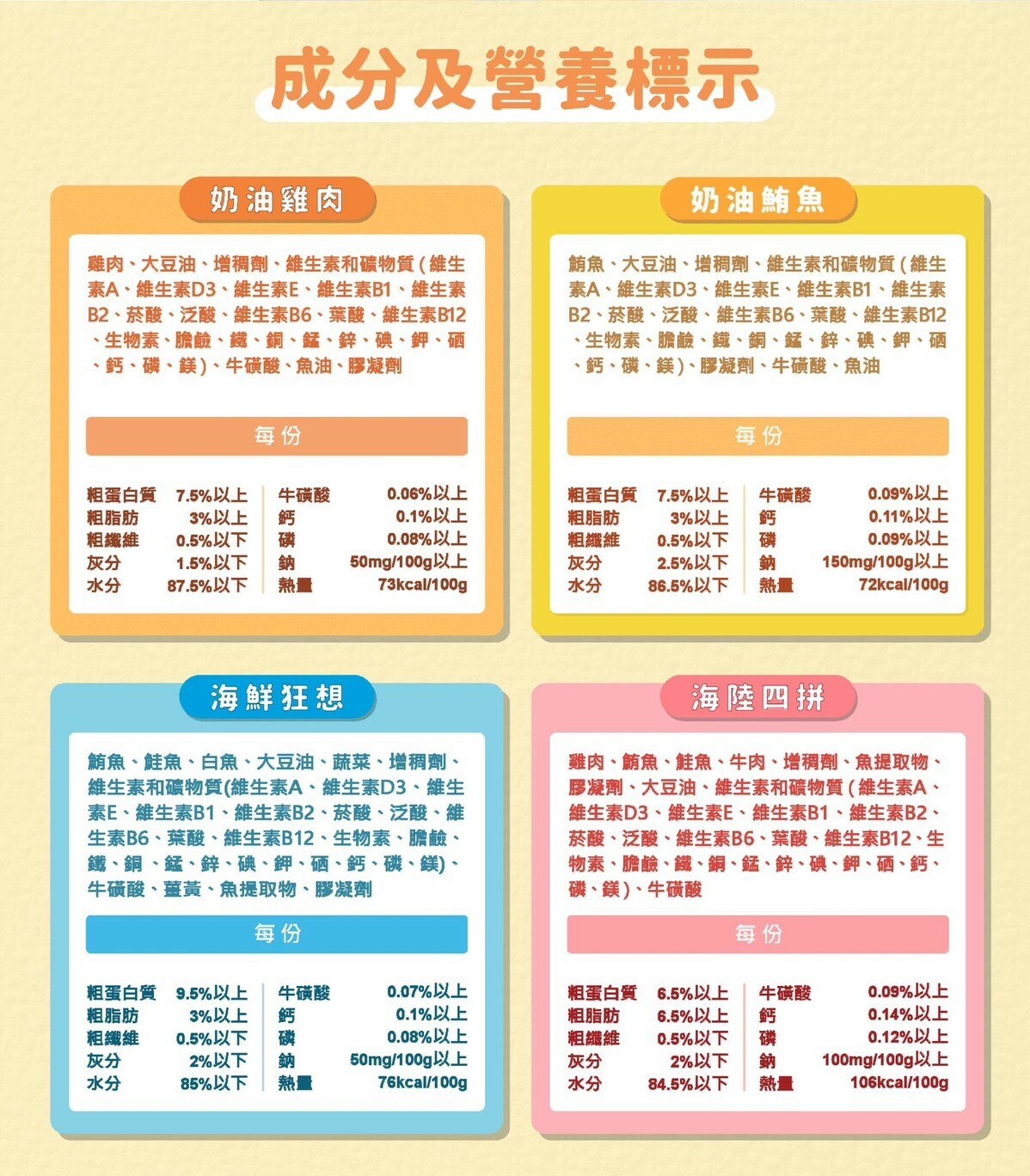 使用人食用食材等級製作,全口味低磷,腎貓也可以食用。