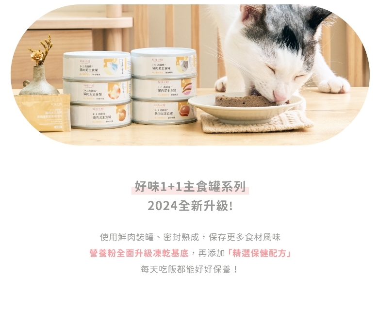 ⚠️小提醒:2024 好味主食罐全新升級,營養粉全面升級凍乾基底,再添加「精選保健配方」,賣場舊版本出完將直接出新版本,不在另行通知。