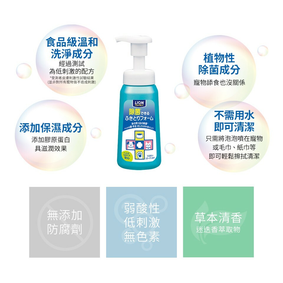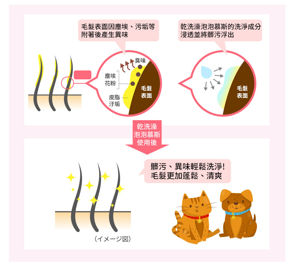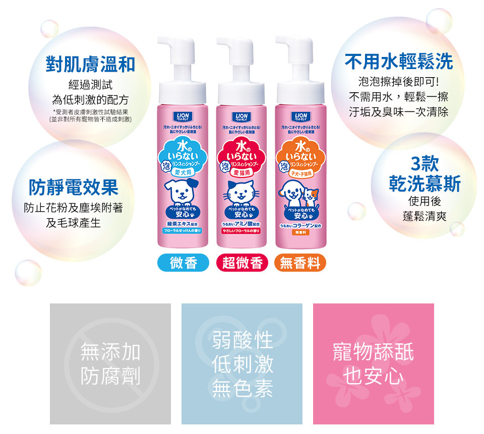 獅王乾洗澡慕斯,泡泡擦掉後即可!不需要用水,輕鬆使用超方便!