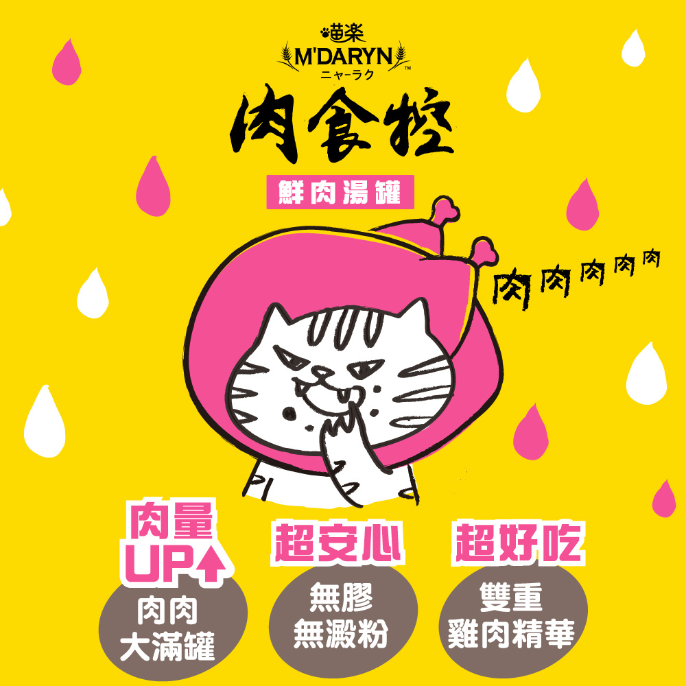 肉食控鮮肉湯罐加入雞高湯與小分子雞肉蛋白,兩種雞肉精華帶出食材本身的「鮮味」,讓可以感受到鮮味的小肉食控們欲罷不能!