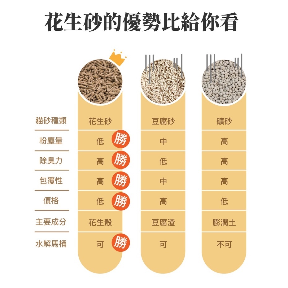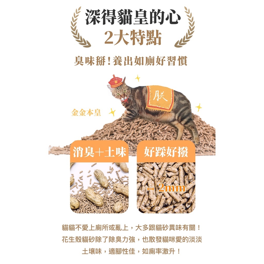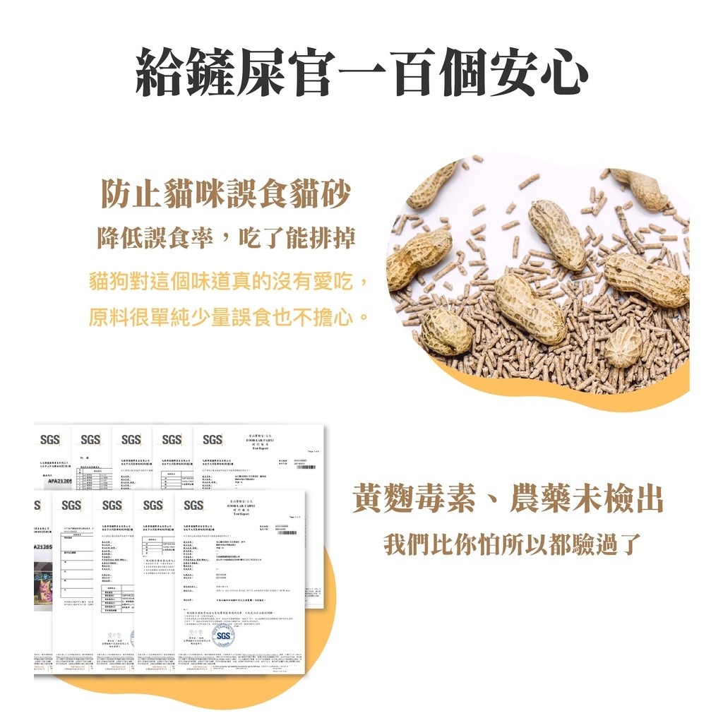 為了避免過量的尿液贈成花生殼砂在盆內提早分解,請保持4cm 厚度,進入馬桶時就能瞬間分解。