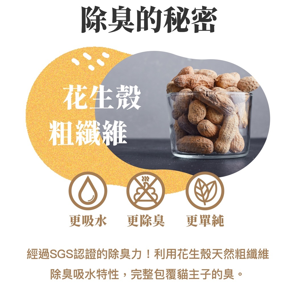 原料:花生殼、玉米澱粉、瓜爾豆膠、黃豆纖維