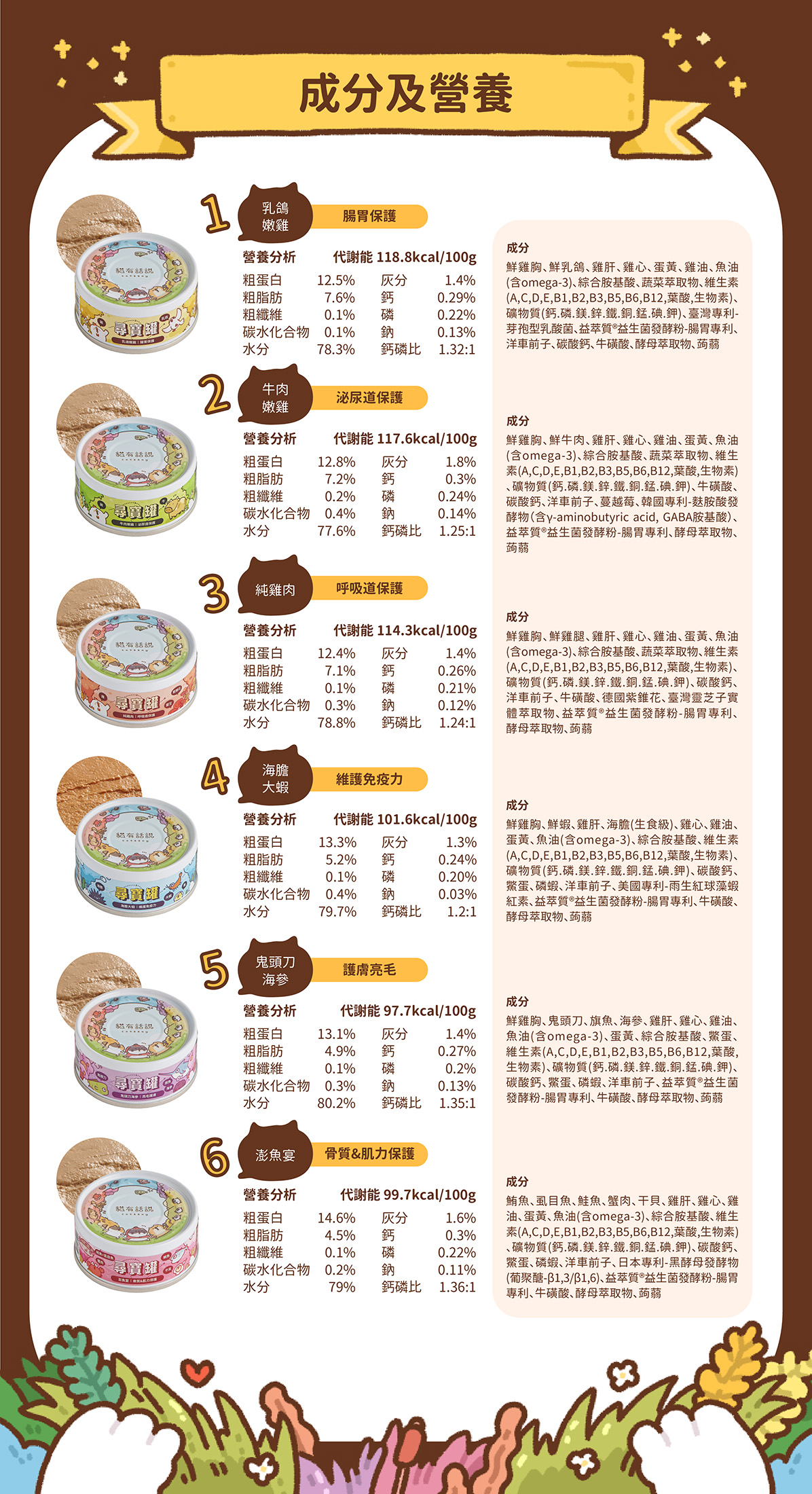 經專業獸醫師&營養師監製下,特別針對貓貓6種配方,全方位保護功能設計規劃