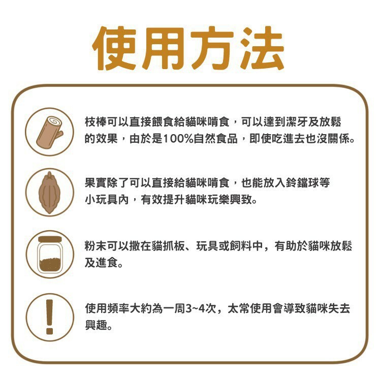 木天蓼枝棒、果實有香氣會吸引貓咪啃食,在啃食的過程中可以達到潔牙的效果