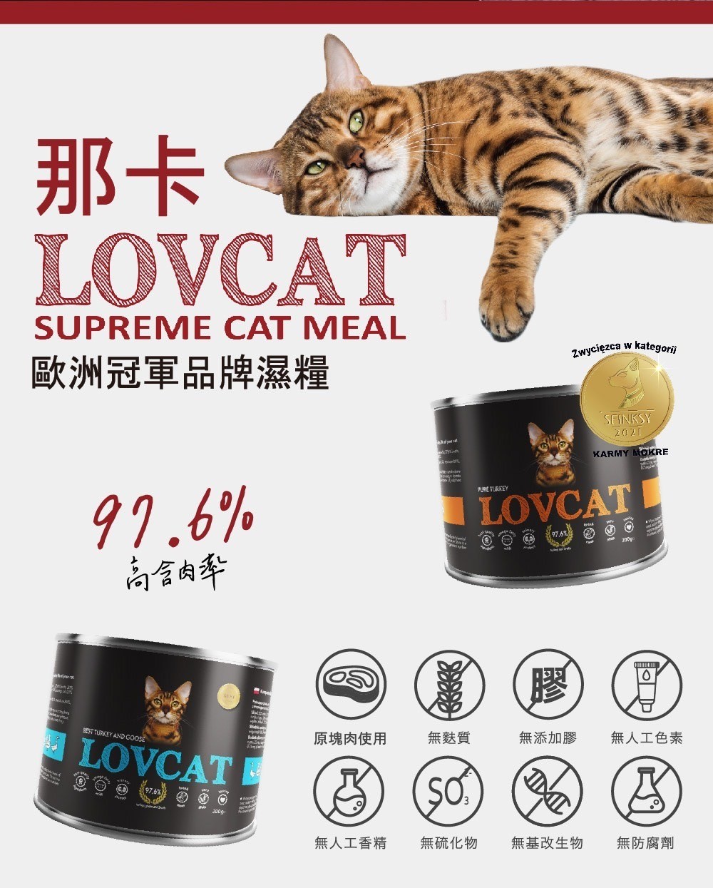 為了追求健康,加強嗜口性,那卡添加頂級鮭魚油,豐厚香氣更多了營養,97.6%的高含量原塊肉,補充高蛋白,每口都是肉!