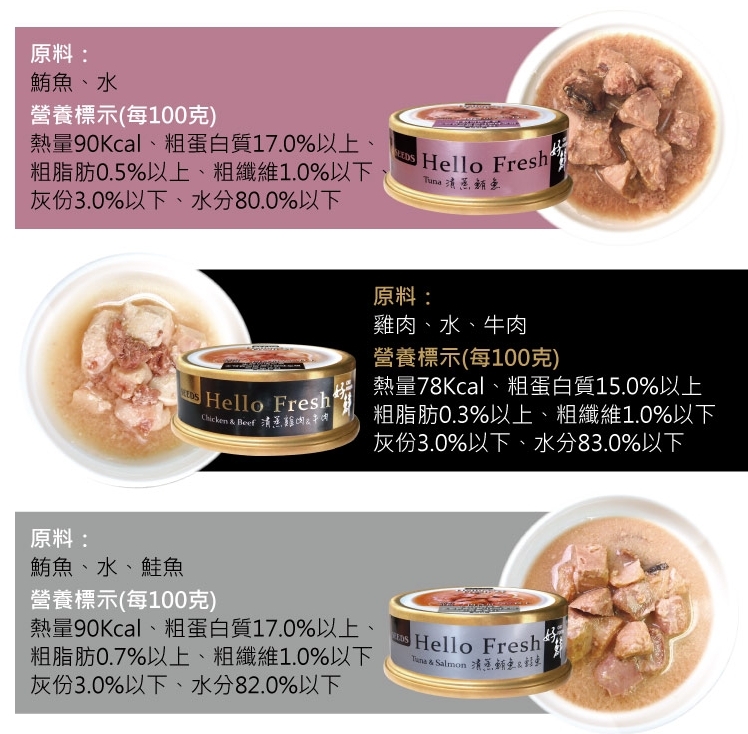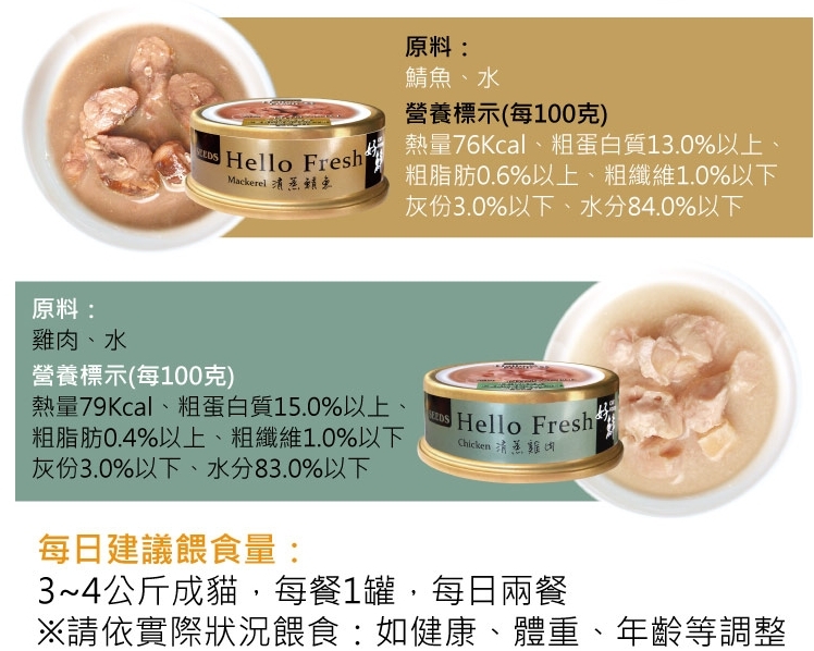 ☑ 新鮮肉品切塊直接封罐蒸煮,原料單純,只有 魚、雞肉、水