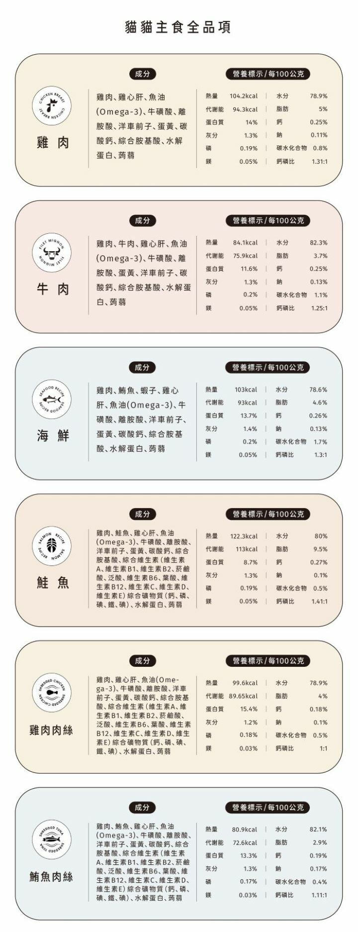 泥狀:雞肉/牛肉/海鮮/鮭魚