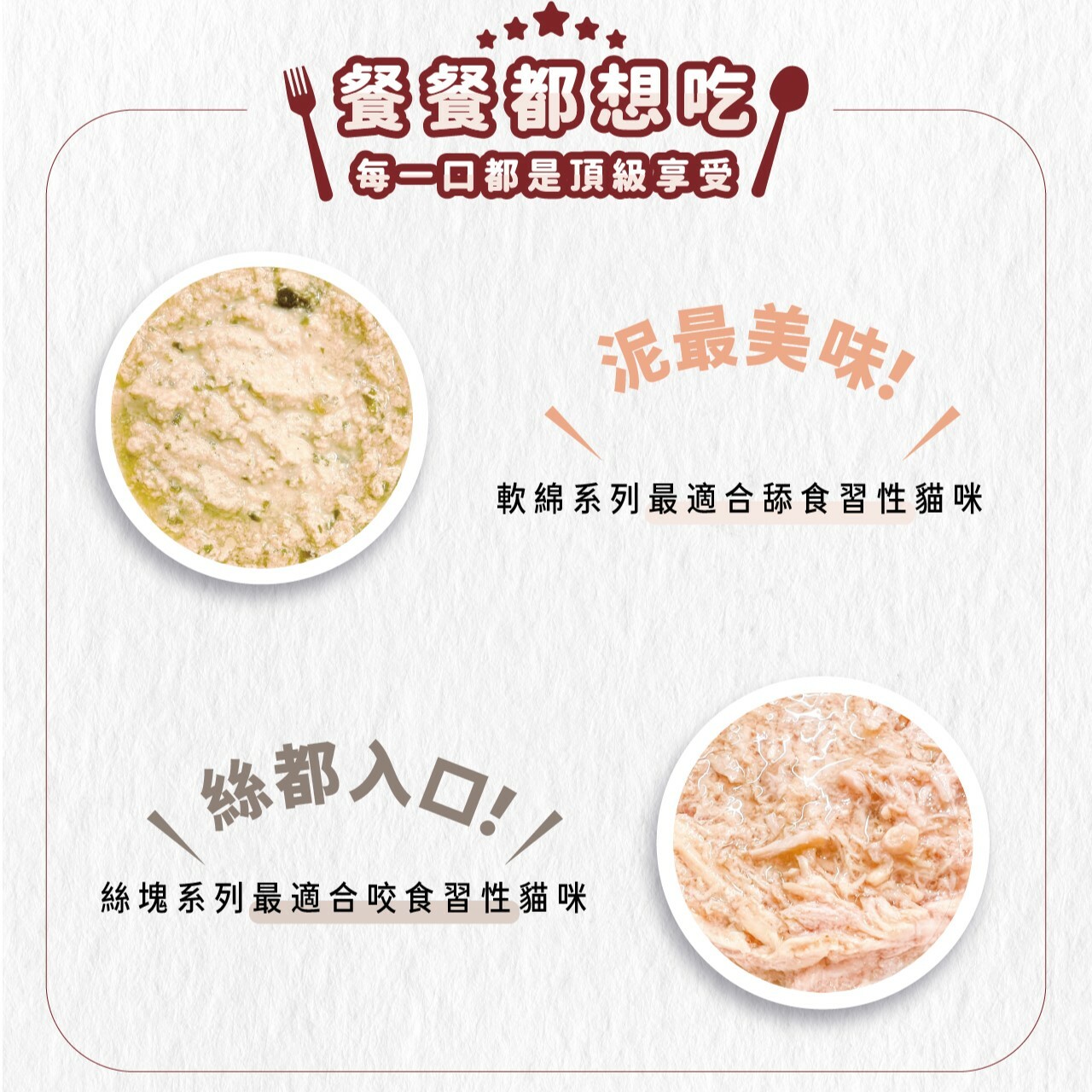 ☑ 泥狀綿密質地最適合舔食習性貓咪