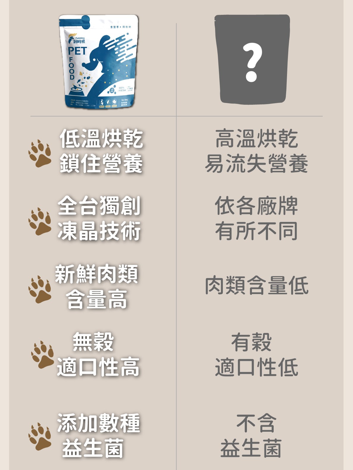 ☑ 採用在地新鮮食材,製作無穀高適口性飼糧