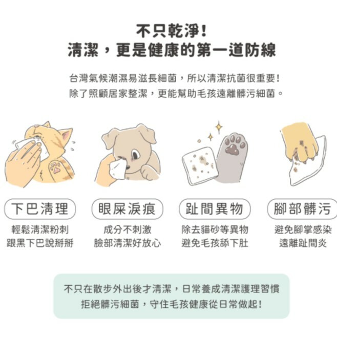 毛孩專屬濕式衛生紙,成分單純,可擦拭毛孩淚痕
