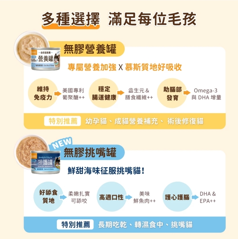 • 專為不愛吃主食罐的貓貓打造入門