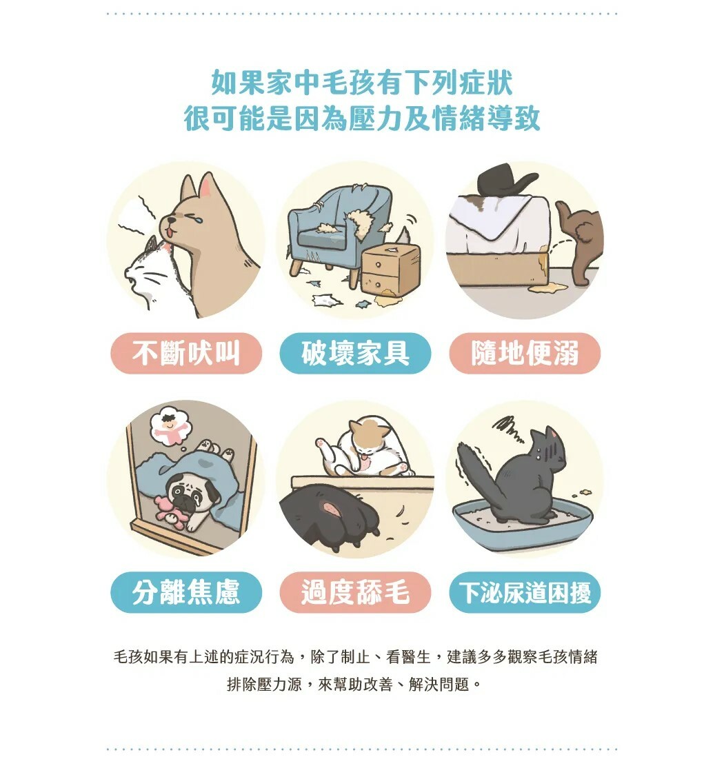 • 適合有長期情緒壓力困擾的毛孩每日補充