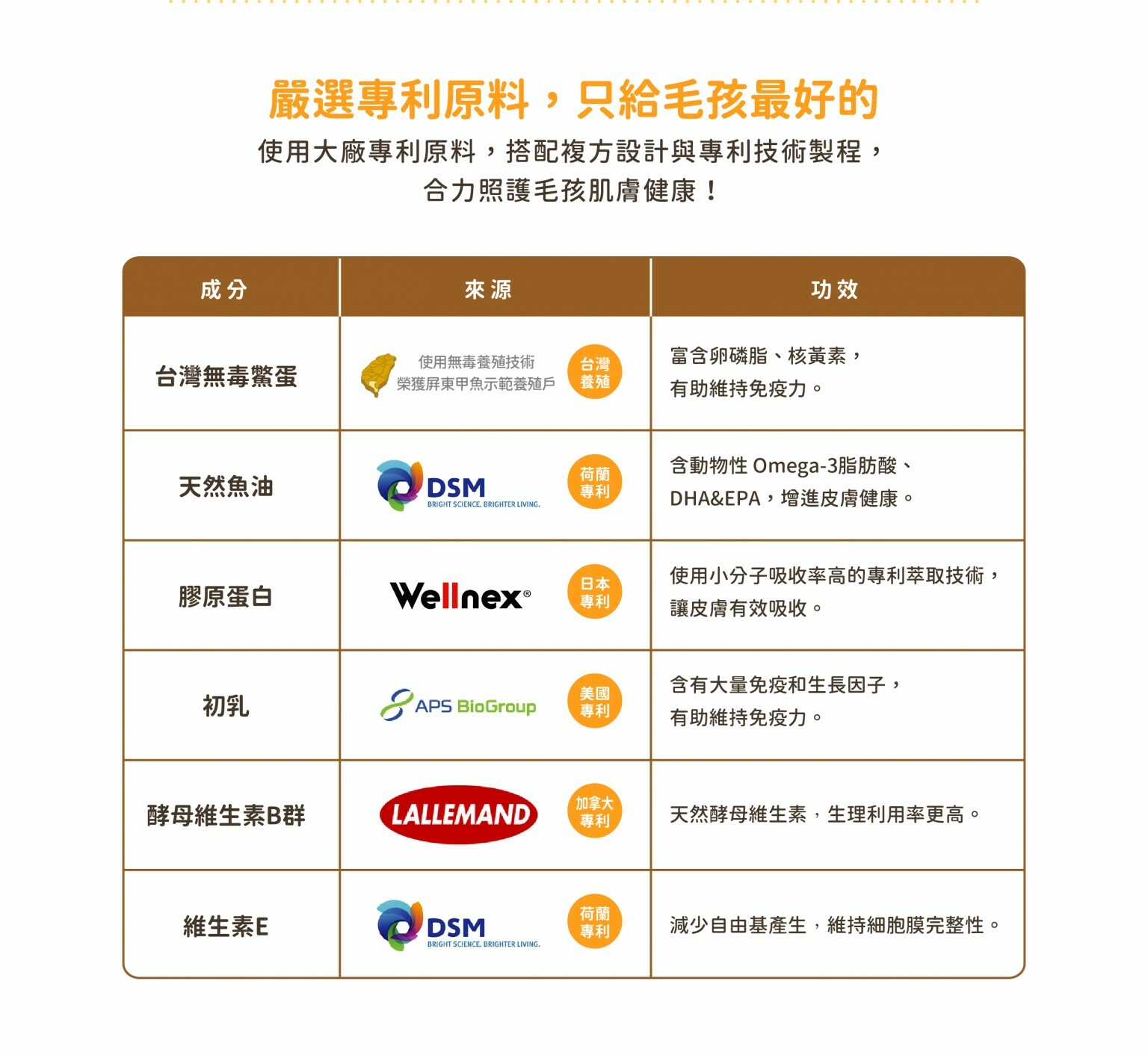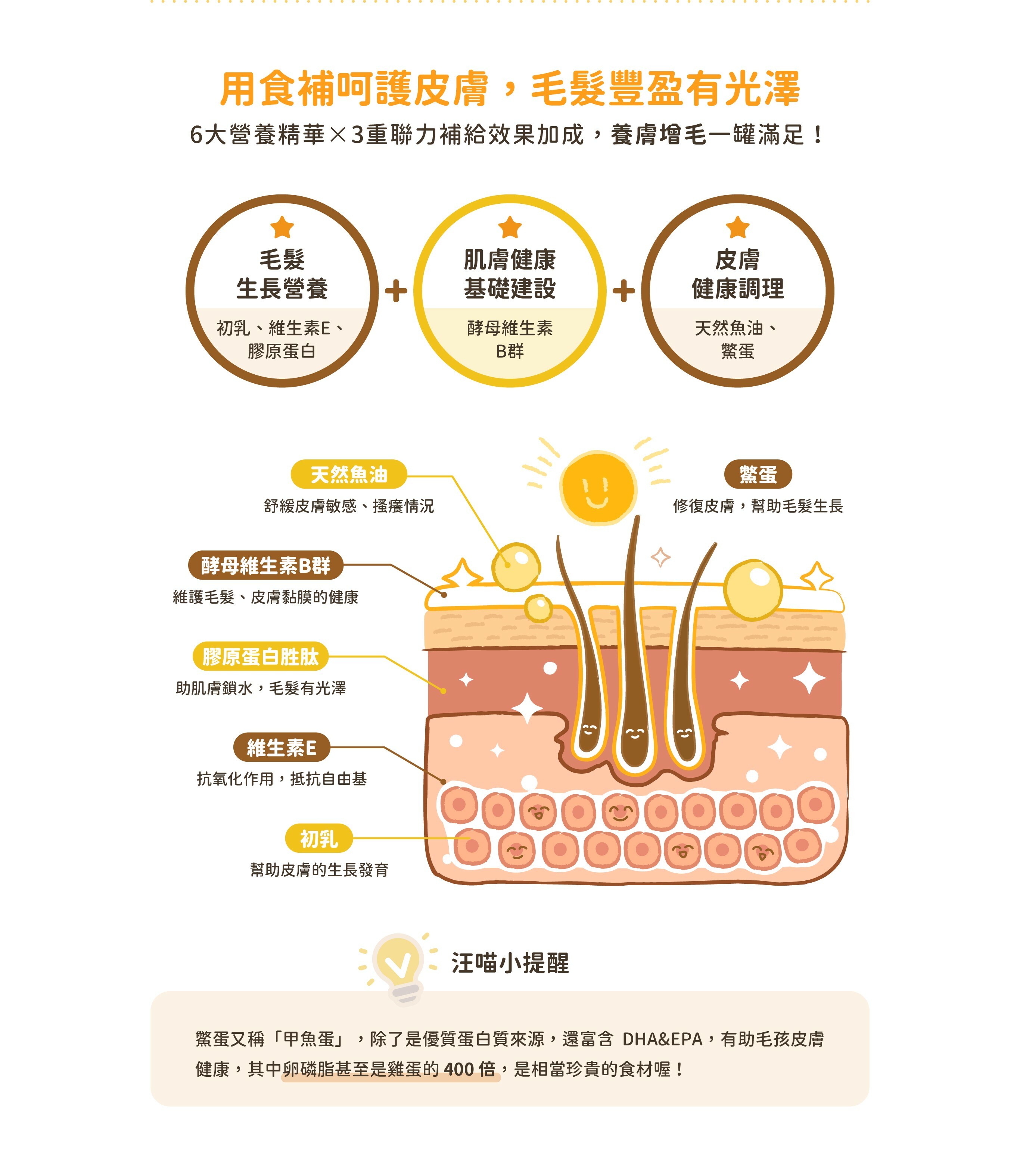 • 天然鱉蛋 x 五大國際專利原料,讓毛孩皮膚健康、毛髮濃密。
