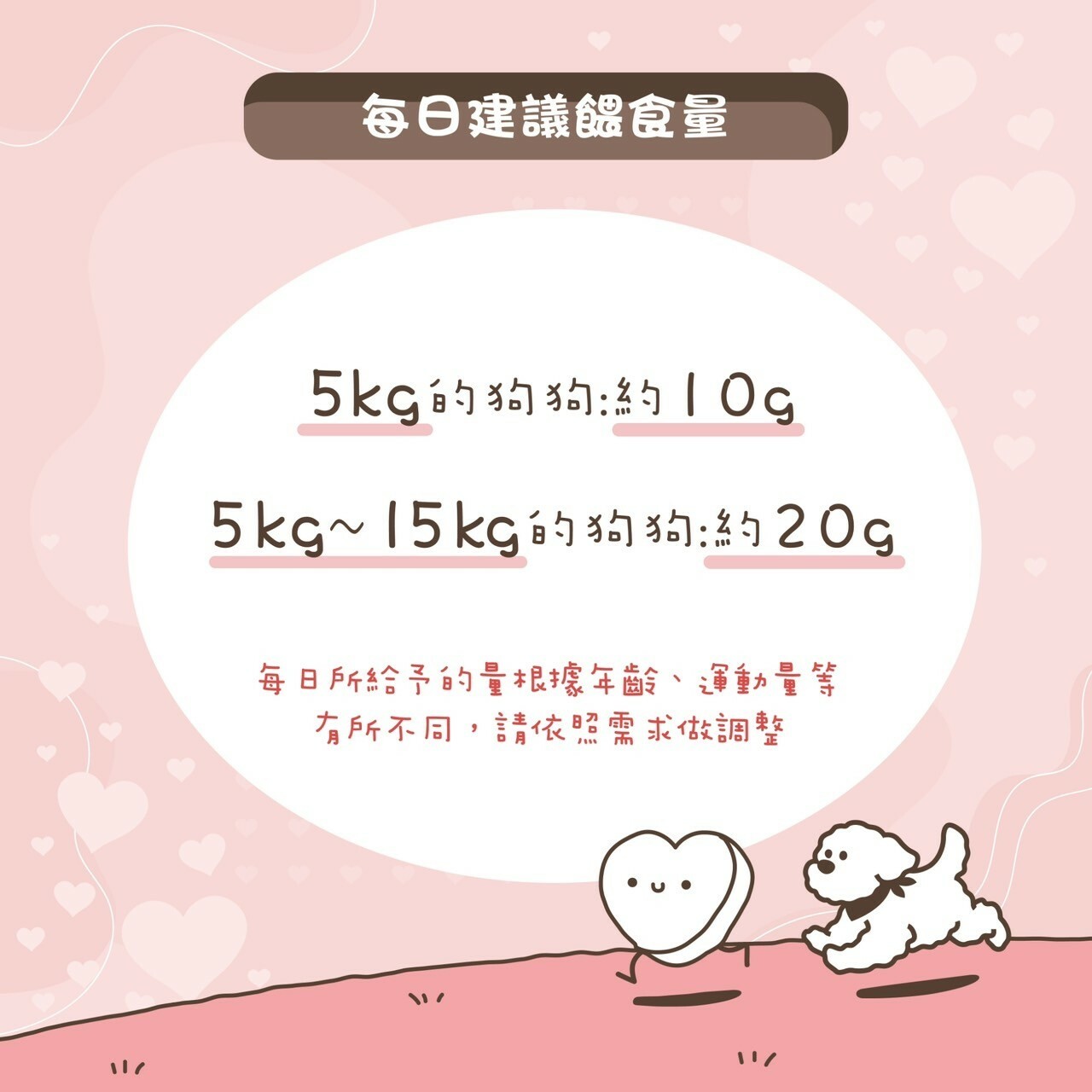 小提醒:每日給予的量依據年齡、運動量等,有所不同,請依照需求做調整。