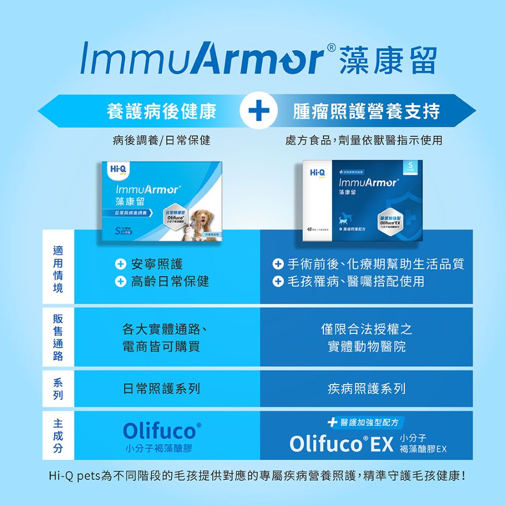 日常與病後調養添加核心成分【Olifuco®小分子褐藻醣膠】,幫助毛孩免疫健康!