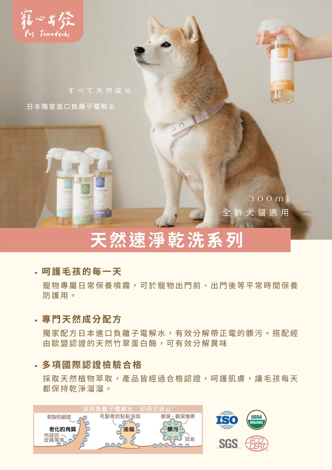 寵物專屬日常保養噴霧,可於寵物出門前、出門後等平常時間保養防護
