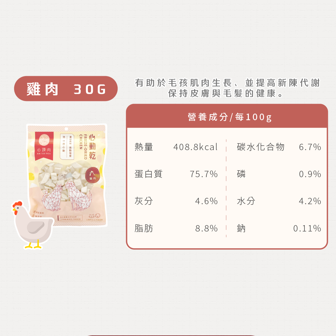 ☑ 優質蛋白質首選,100%天然原肉,加水能還原肉塊